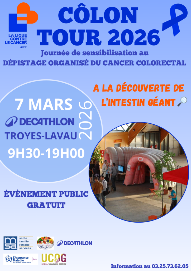 - Le samedi 07 mars au DECATHLON TROYES LAVAU pour notre COLON TOUR 2026